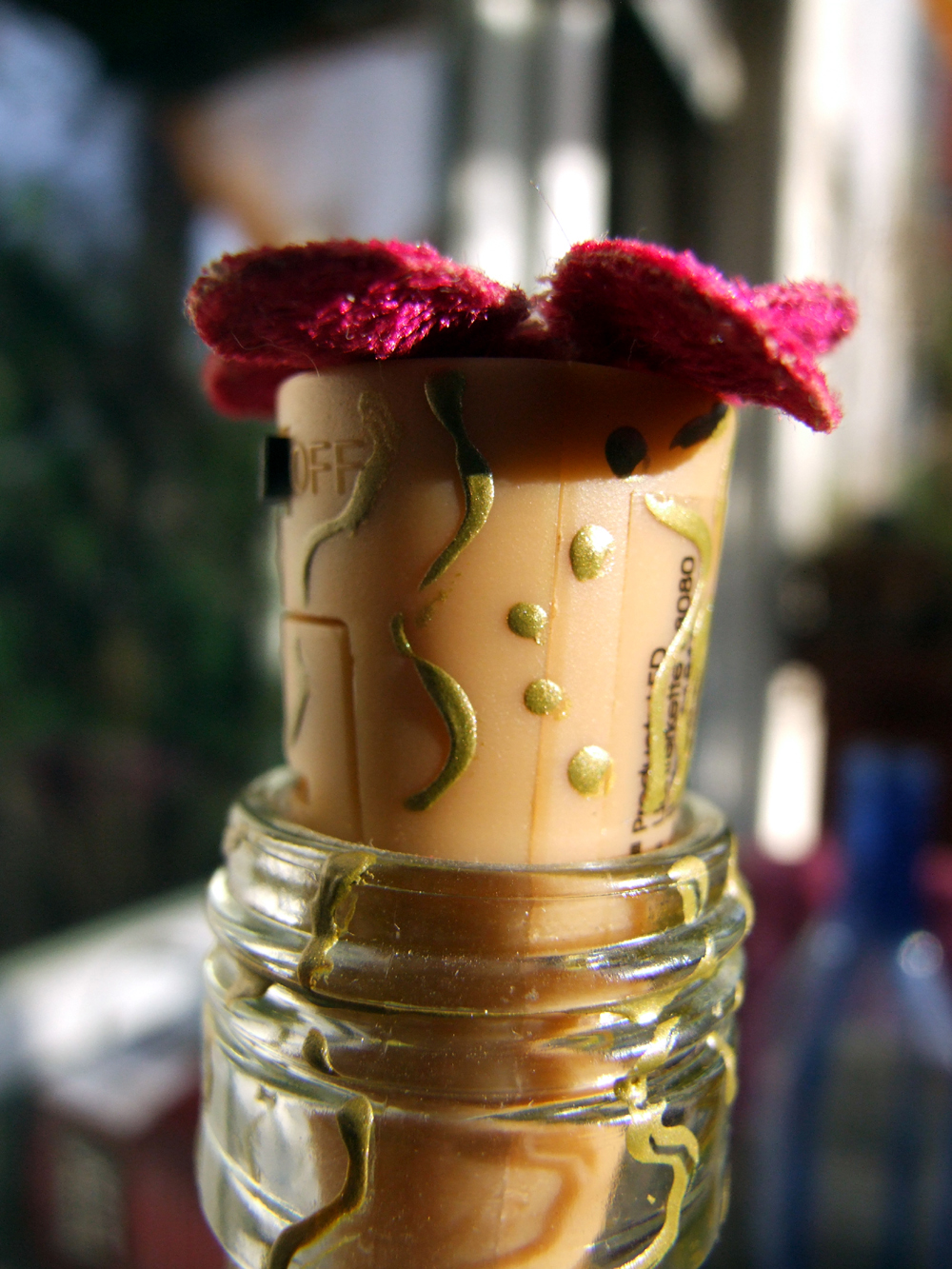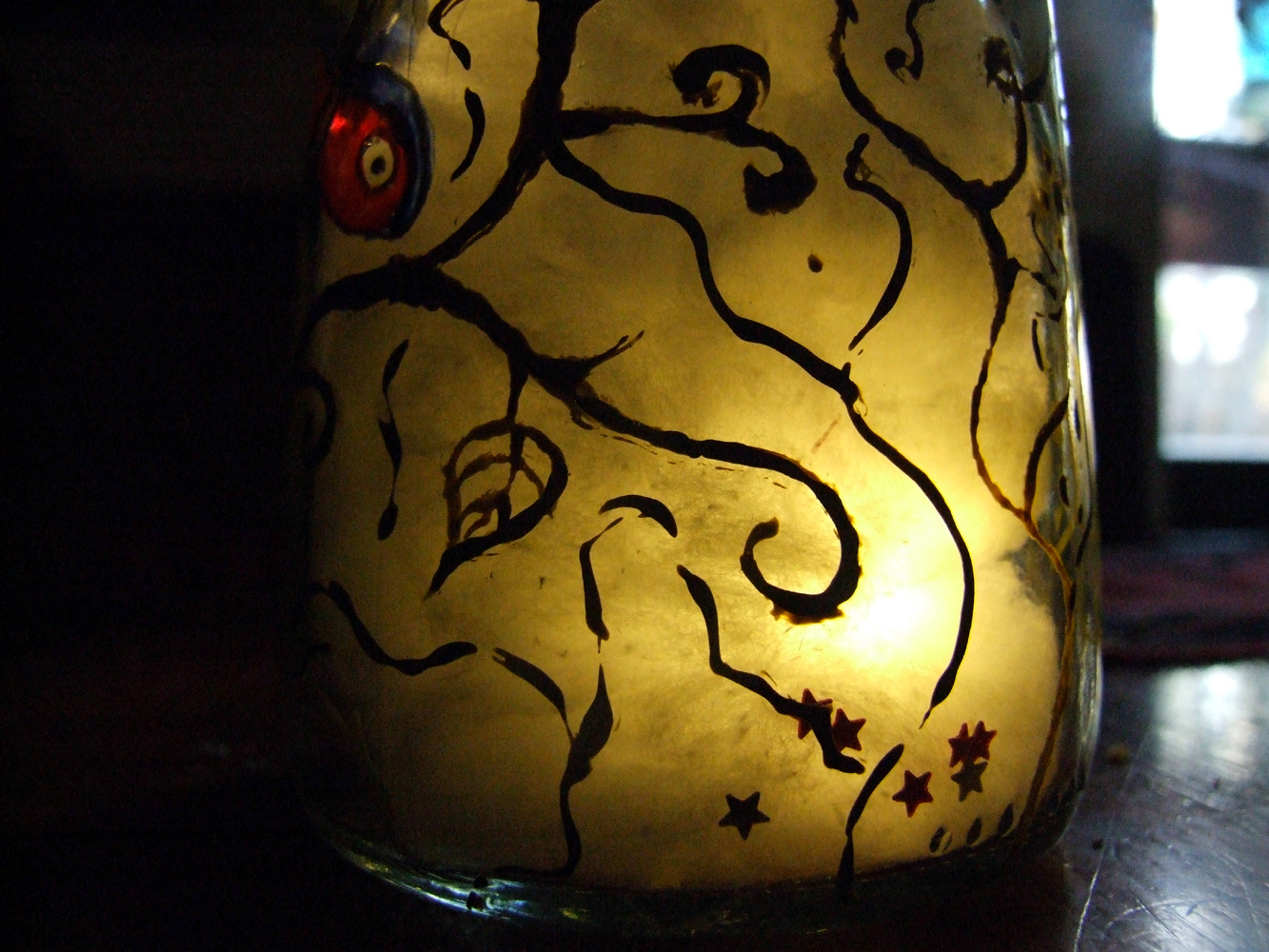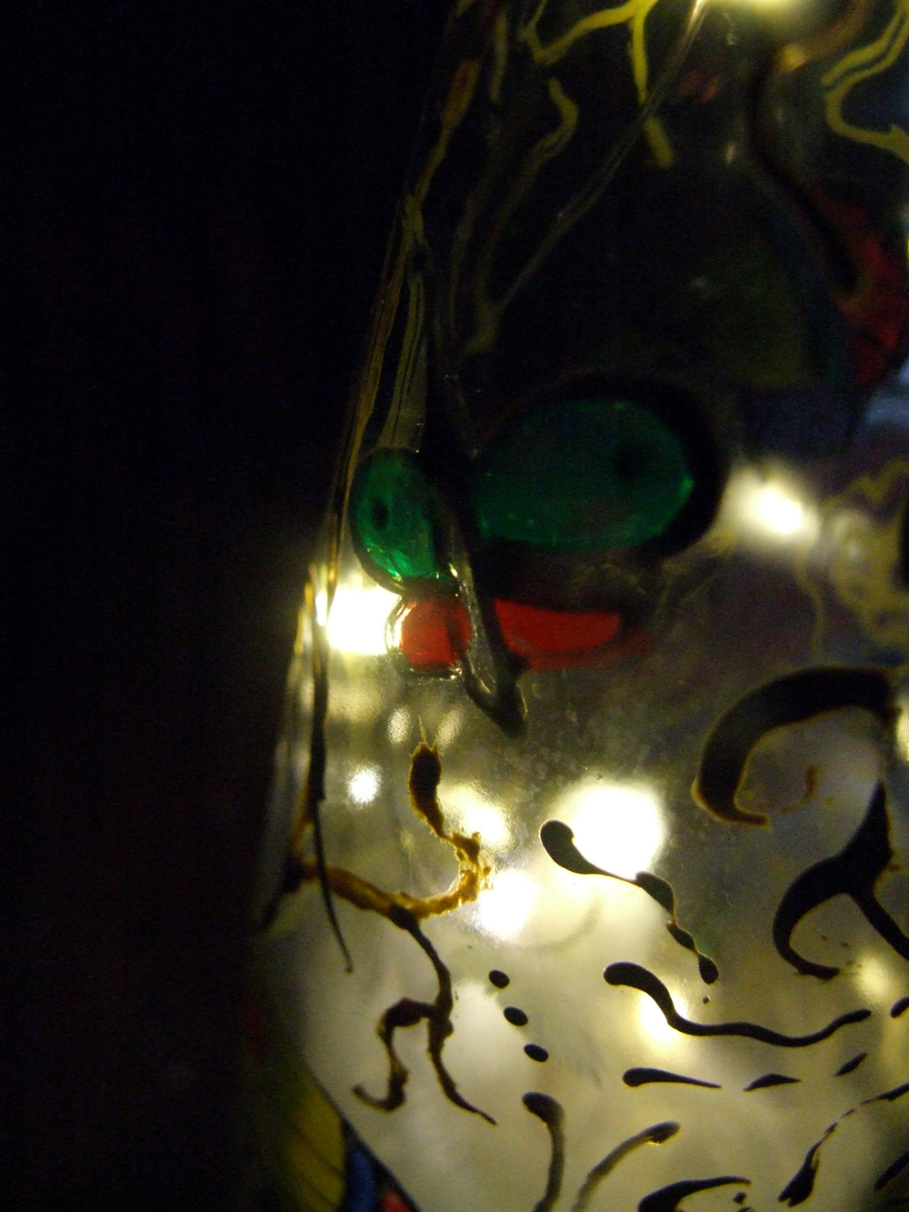 Die gemalten Flaschen sehen im Hellen wie auch im Dunkeln gleichermaßen gut aus. Ein weiterer Vorteil ist, dass man die Lichterketten problemlos auswechseln kann, ohne das „Innenleben“ zu beschädigen.