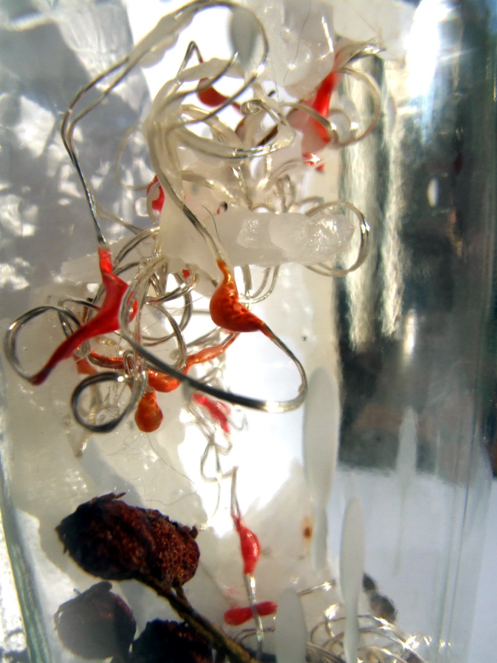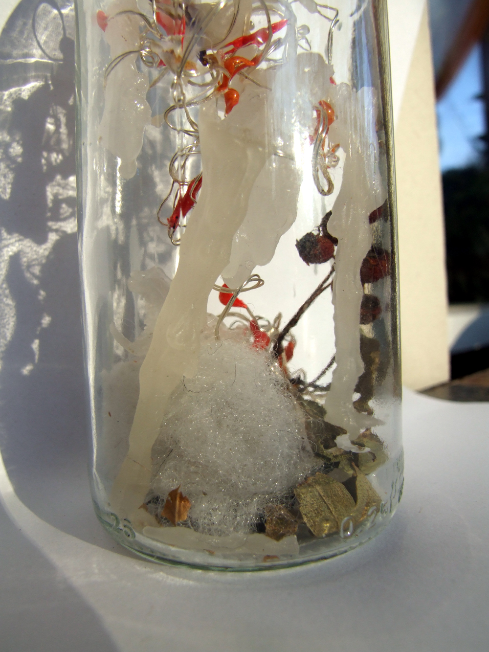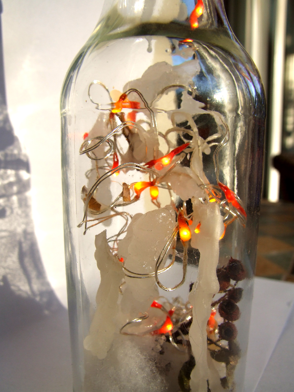 Gedicht von Klaus-Jürgen Schwarz Die zweite Flasche unserer Winteredition: Das warme Licht leuchtet sanft durch die Eiszapfen. Efeublätter und Winterbeeren liegen schlafend auf dem Schnee. Der Augenblick - als ob man die Zeit anhalten würde, um den Eiszapfen in aller Ruhe betrachten zu können. Eingefrorene Zeit.