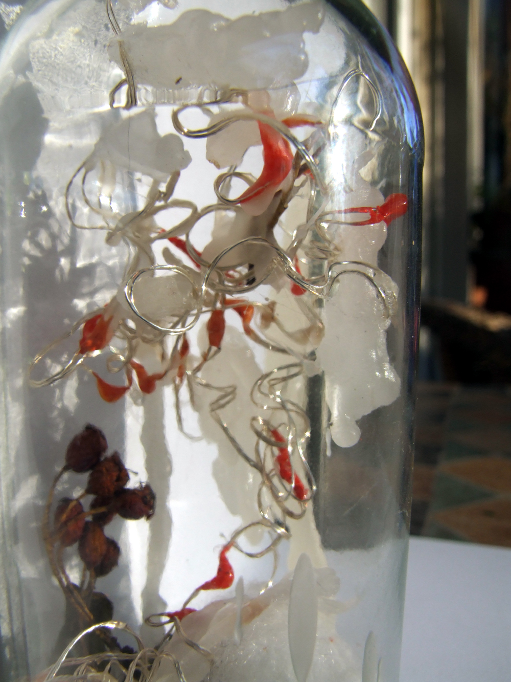 Poem of Klaus-Jürgen Schwarz The second bottle of our winter edition: The warm light shines gently through the icicles. Ivy leaves and winter berries lie asleep on the snow. The moment - as if you were stopping time to look at the icicle in peace. Frozen time.